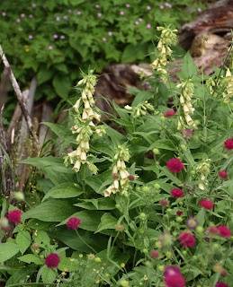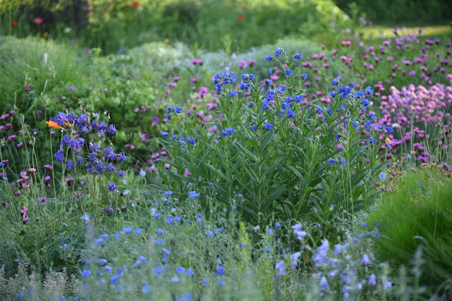 Im Moment lege ich im neuen Garten allerlei Beete an, ein größeres Projekt zum Thema Schottergarten steht noch bevor und auch sonst wird so einiges Neues entstehen. Dabei möchte ich behutsam vorgehen, da die neue Gartenfläche von einer sehr schönen, seit Jahrzehnten ungedüngten Magerwiese umgeben ist, die ich natürlich erhalten und in den Garten integrieren möchte. Dort wachsen jede Menge Betonie, Schafgarbe, Wiesenflockenblumen unterschiedlichster Art, Labkraut, Margeriten und Glockenblumen, sodass meine Bienen (die mitübersiedelt sind) ein gutes Auskommen finden - ganz abgesehen vom herrlichen Anblick, den diese Wiese bietet.
